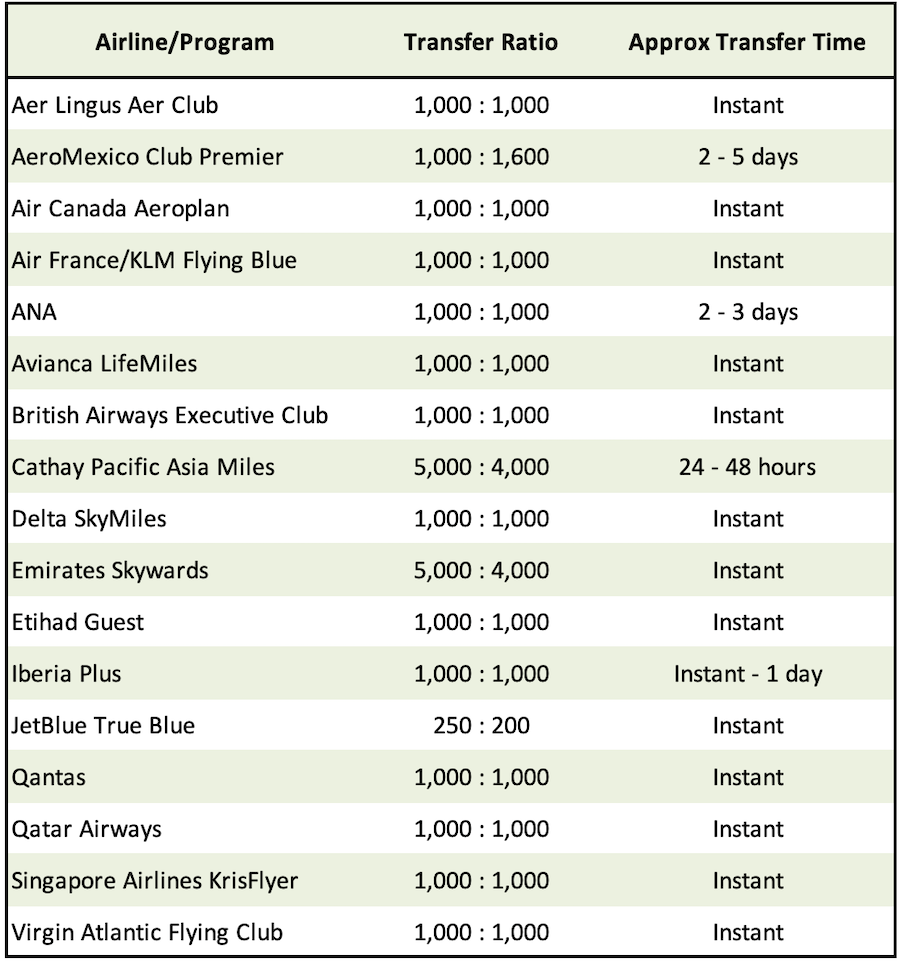 […] Transfer points to a variety of airline and hotel loyalty programs (more details here) […]