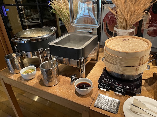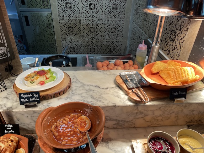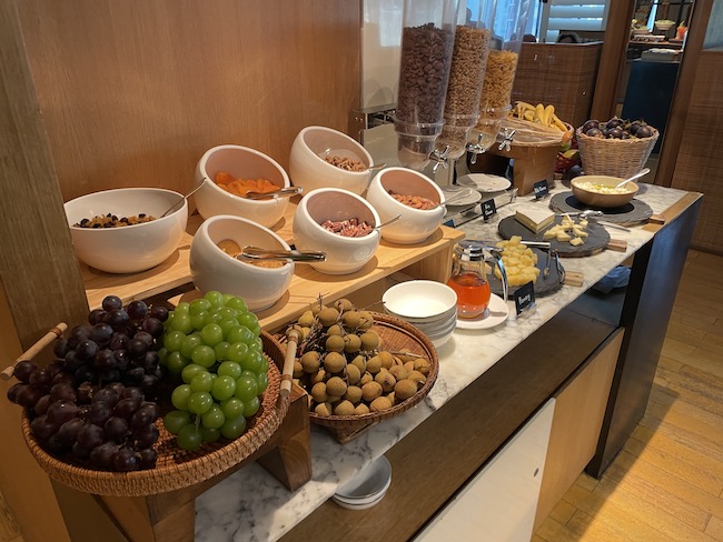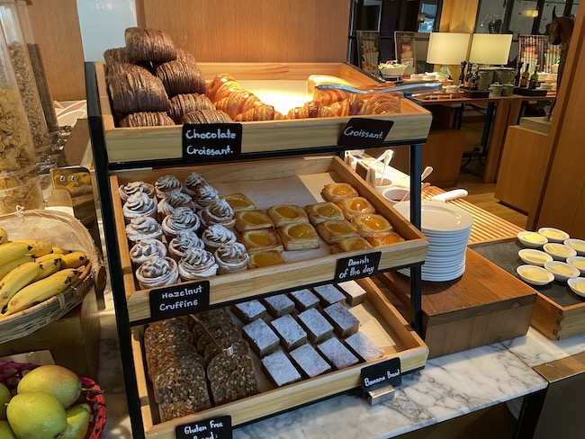 There was a good choice of dishes on offer with traditional hot ‘Western’ food sharing space with a flavorful Southeast Asian/Chinese selection as well as the usual cereals, fruit, yoghurts, cold cuts, cheeses, and pastries.
